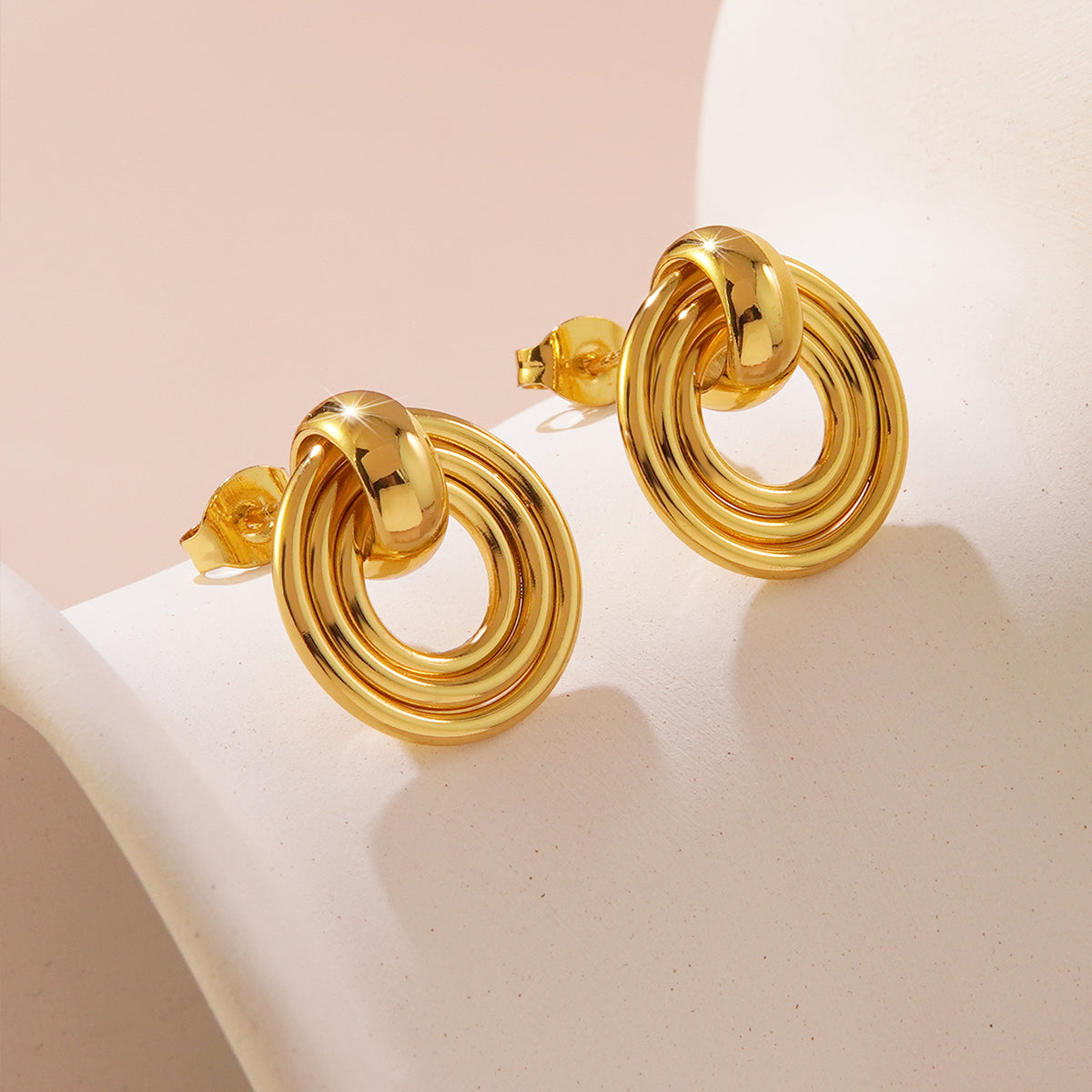 Small in size but big on style, these beautifully crafted earrings are made from durable stainless steel and finished in radiant 18K gold plating. Their minimalist design makes a bold statement with effortless elegance, perfect for elevating any look. Lightweight, non-tarnish, and timelessly chic—these earrings are your go-to for everyday beauty with a touch of shine.
