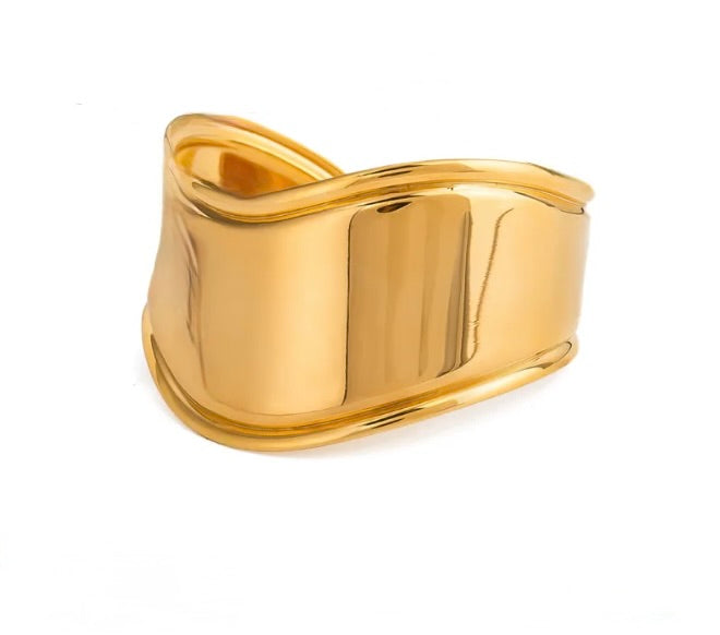 Turn heads with this chic gold cuff bangle, crafted from high-quality stainless steel and luxuriously plated in 18K gold. Its sleek yet bold design embodies glam, sexy, romantic, and modern style—making it the perfect statement piece for any occasion. Waterproof & Non-Tarnish – built to last through everyday wear, showers, and nights out, all while keeping its radiant shine. Lightweight yet durable, this bangle layers beautifully with other pieces or shines effortlessly on its own. A must-have for the modern jewelry lover who craves elegance with an edge.