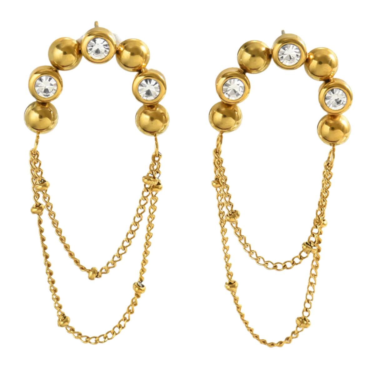 Make a bold entrance with these chic tassel earrings, crafted from durable stainless steel and finished in radiant 18K gold plating. Lightweight yet eye-catching, their flowing design adds movement and flair to any outfit. With a non-tarnish finish, these statement earrings deliver lasting shine and effortless style—perfect for elevating your look day or night.