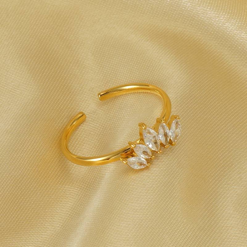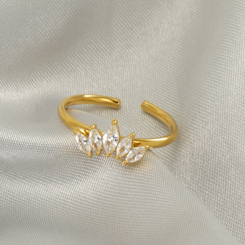 Regal and sparkling, this Crown Diamond Adjustable Ring features a beautifully detailed crown design adorned with dazzling zircon diamonds. Crafted from stainless steel and 18K gold plated, it’s non-tarnish, waterproof, and designed for lasting shine. The adjustable band ensures a comfortable fit, making it a perfect statement piece for stacking or wearing alone to add a touch of elegance and royalty to any look.