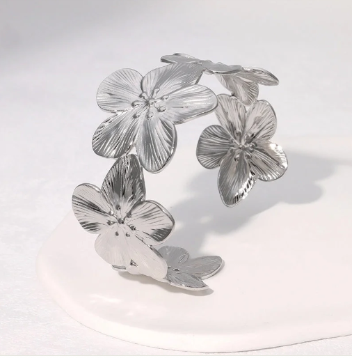 Bring timeless charm to your jewelry collection with this vintage-inspired French style cuff bracelet. Featuring a delicate floral design in radiant 18K gold-plated stainless steel, this piece blends romantic elegance with a touch of antique allure. Its open cuff silhouette makes it easy to wear while adding a refined statement to any look. Waterproof & Non-Tarnish – crafted to keep its shine through everyday wear. Vintage Elegance Meets Modern Durability – a forever piece that feels both classic and fresh. Perfect for dressing up your everyday style or completing a chic evening look.