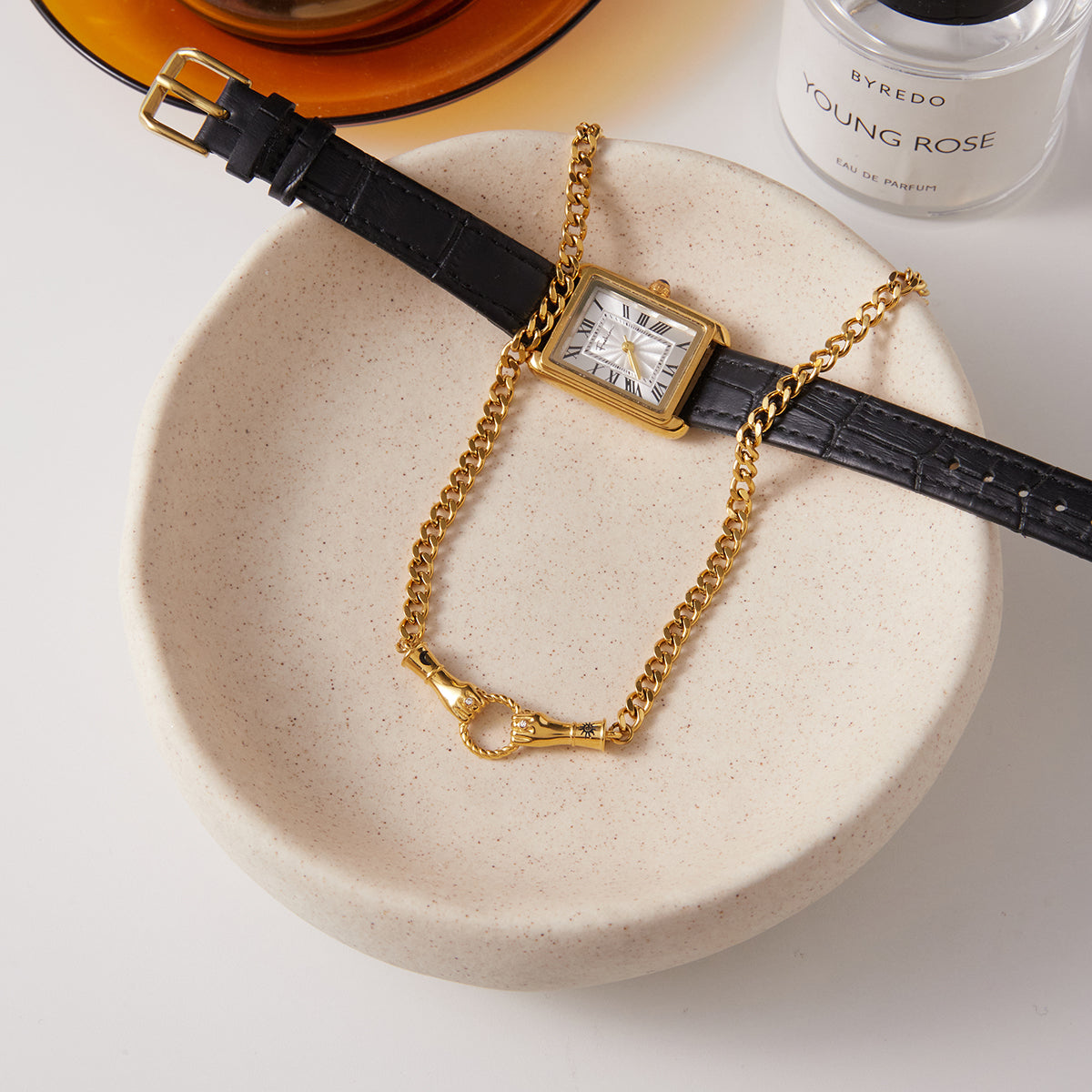 This bold chain necklace features a unique sculpted clasp with subtle celestial accents, crafted from high-quality stainless steel and finished in rich 18k gold plating for a durable, tarnish-resistant shine. Designed for everyday wear, it measures 15.75 inches with a 2-inch extender and can be worn alone as a statement or layered for a modern, effortless look.