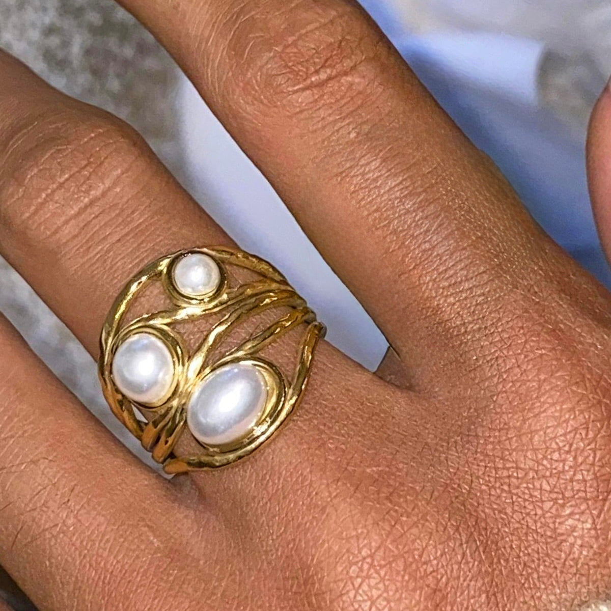 Elevate your everyday look with this 18K real gold plated stainless steel ring, featuring a geometric design with imitation shell pearl inlay. It’s waterproof, non-tarnish, lightweight, and adjustable for a perfect fit — making it a timeless, easy-to-wear piece for any occasion.