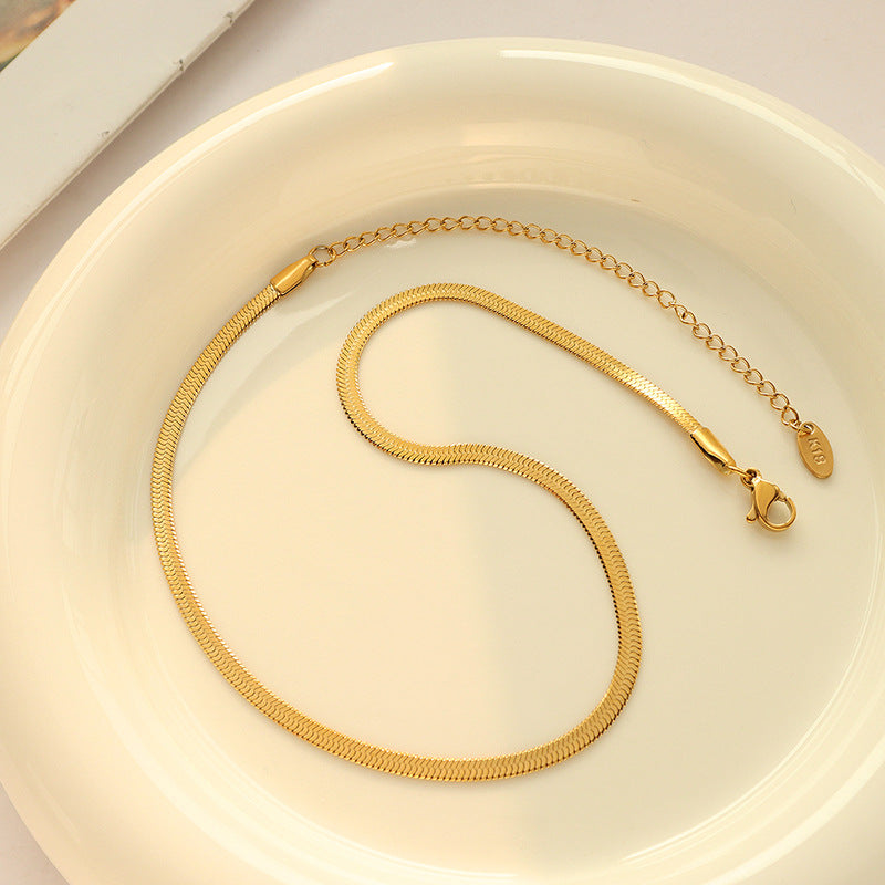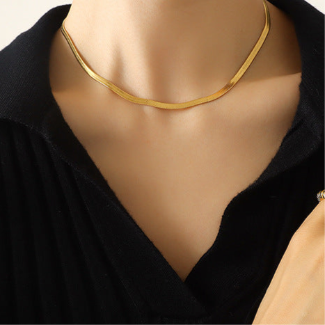Elevate your layering game with this stunning snake chain necklace, crafted from durable stainless steel and finished with luxurious 18K gold plating. Measuring 14.5 inches with a 3-inch extension, it offers a flexible fit that sits perfectly at the collarbone or just below. Its smooth, fluid design reflects light beautifully, making it a timeless piece that pairs effortlessly with any look — from casual chic to evening glam. Tarnish-resistant and hypoallergenic, it's made to shine for years to come.
