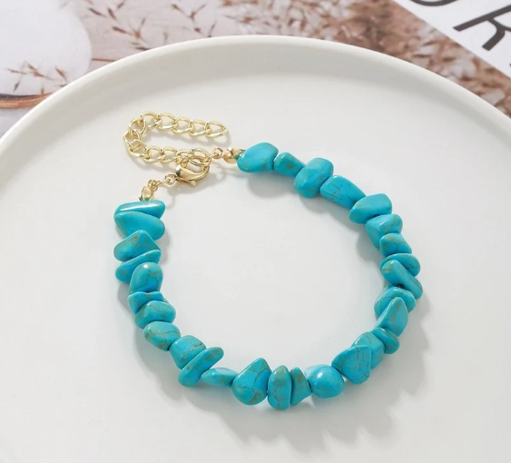 Capture the serene vibes of the coast with these Turquoise Natural Stone Bracelets, featuring unique irregular stones crafted into chic geometric shapes. Each bracelet showcases the vibrant blue-green hues of authentic turquoise, bringing a fresh, earthy touch to your everyday style. Perfect for beach days, casual wear, or layering with other favorites, these bracelets combine natural charm with contemporary elegance.