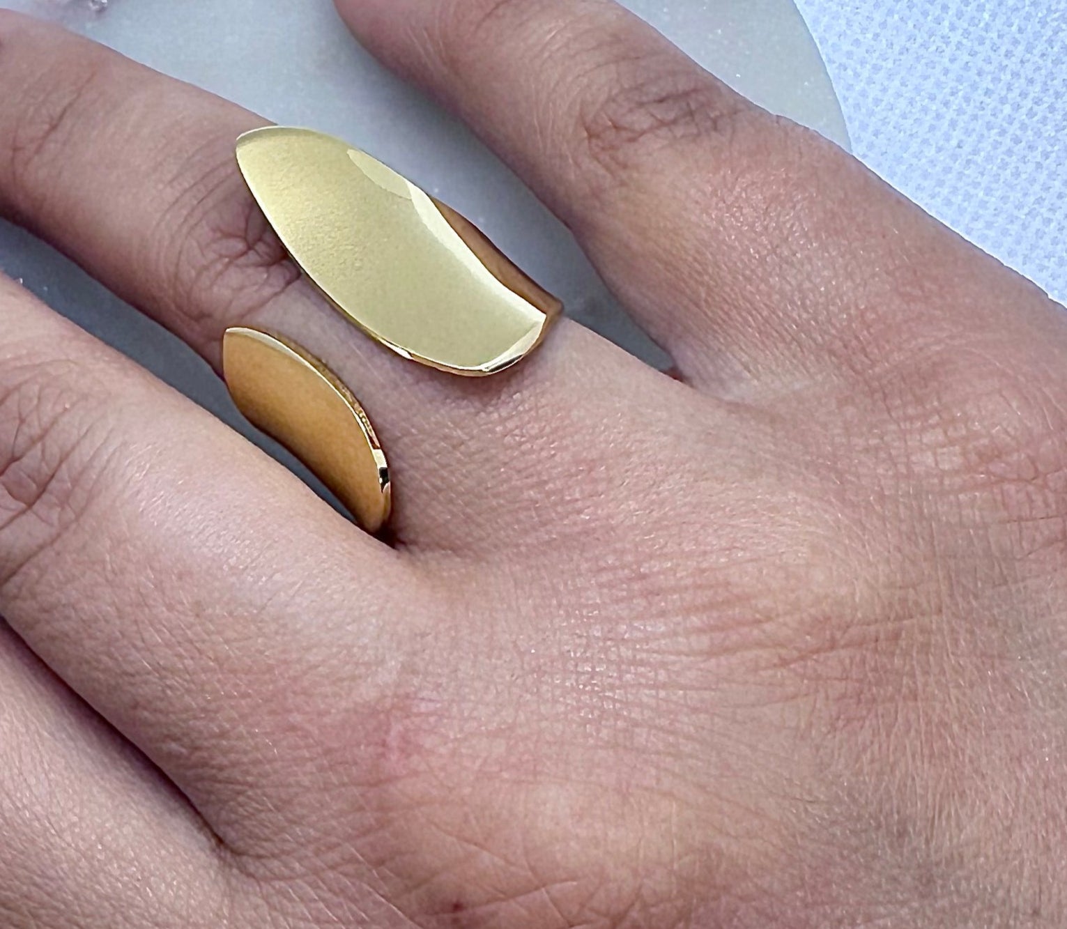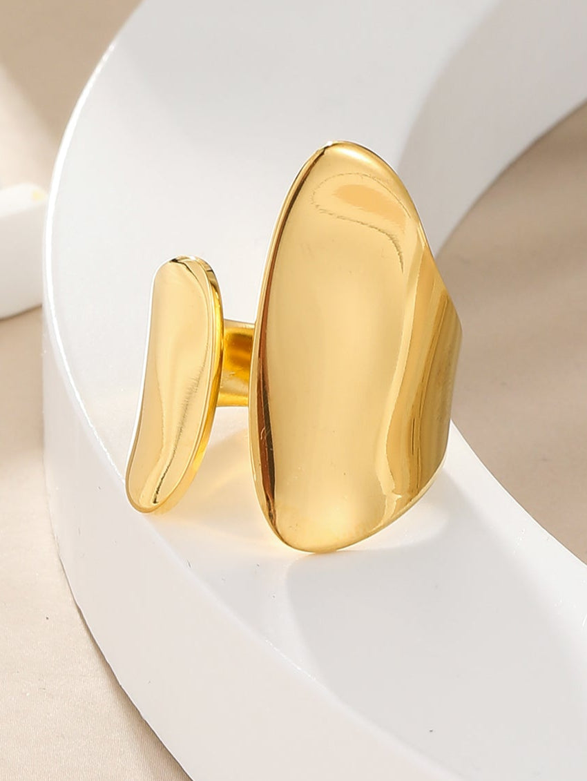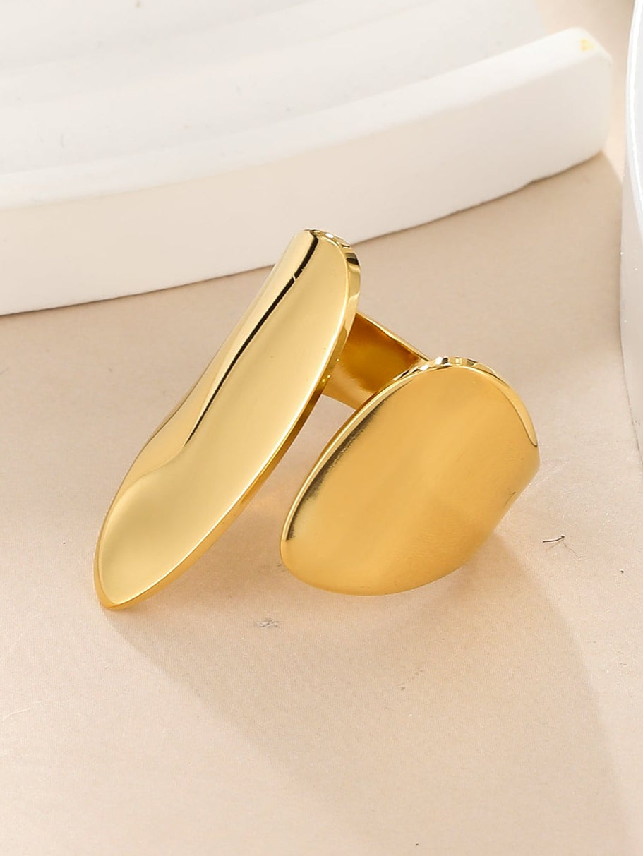 Make a statement with this eye-catching ring, crafted from high-quality stainless steel and finished with a luxurious 14K gold plating. Designed to turn heads, its bold yet versatile design looks stunning on any finger. The adjustable fit ensures comfort and ease, making it a perfect piece for everyday wear or special occasions. Style it solo or stack it—either way, it's bound to stand out.