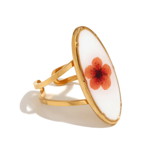 Make a statement with this vintage-inspired geometric ring, featuring an ellipse-quadrilateral design adorned with a delicate red flower. Crafted from durable stainless steel and finished with 18K gold plating, it blends retro charm with modern elegance. Waterproof & Non-Tarnish – designed to keep its shine through everyday wear. Adjustable Design – comfortable fit for any finger, perfect for layering or wearing solo. A bold, eye-catching accessory that adds color, style, and personality to any outfit.